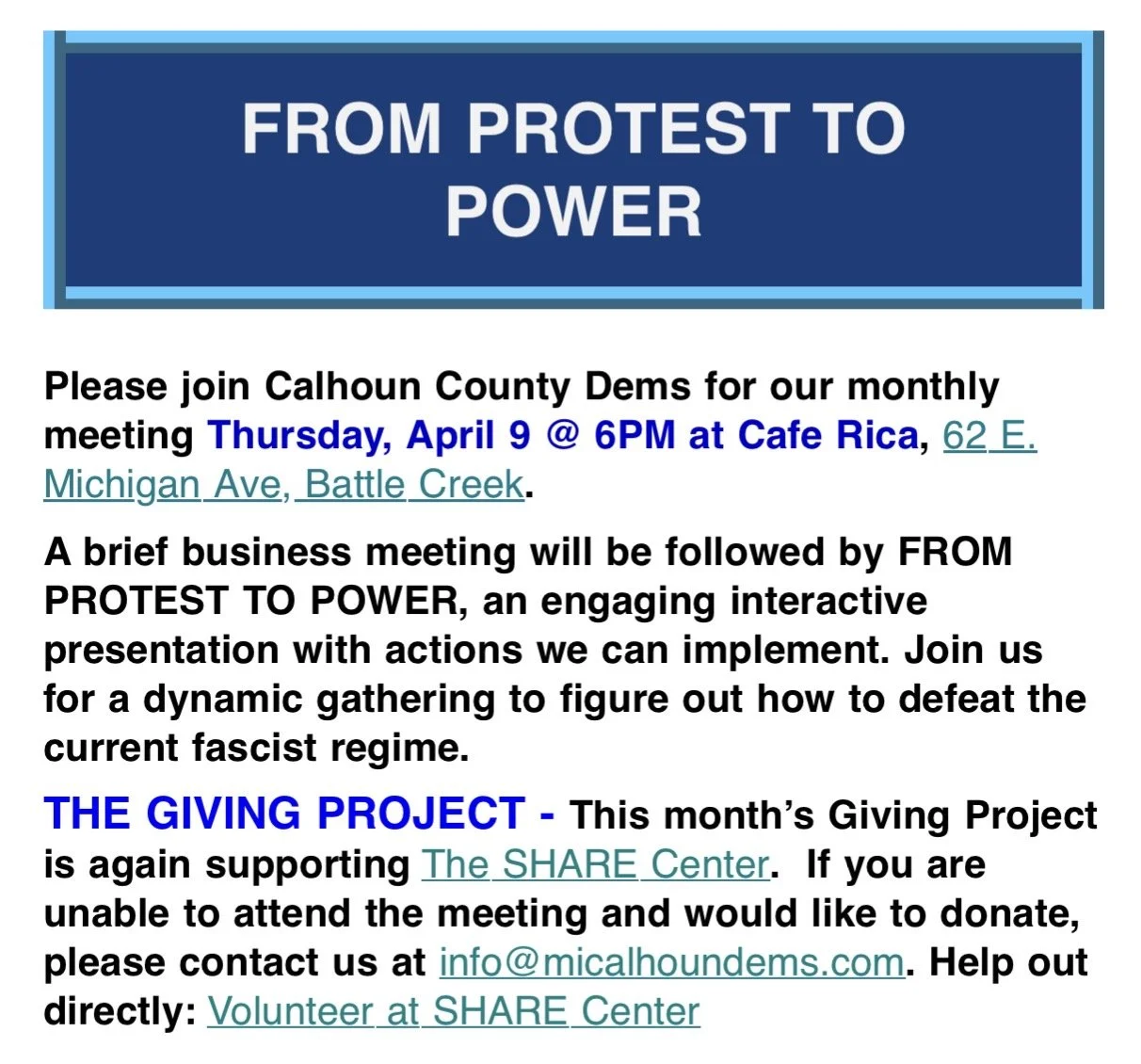 Calhoun County Democrats Calhoun County Democrats getting involved STAY INFORMED EVENTS & VOLUNTEERS DONATE JOIN THE PARTY